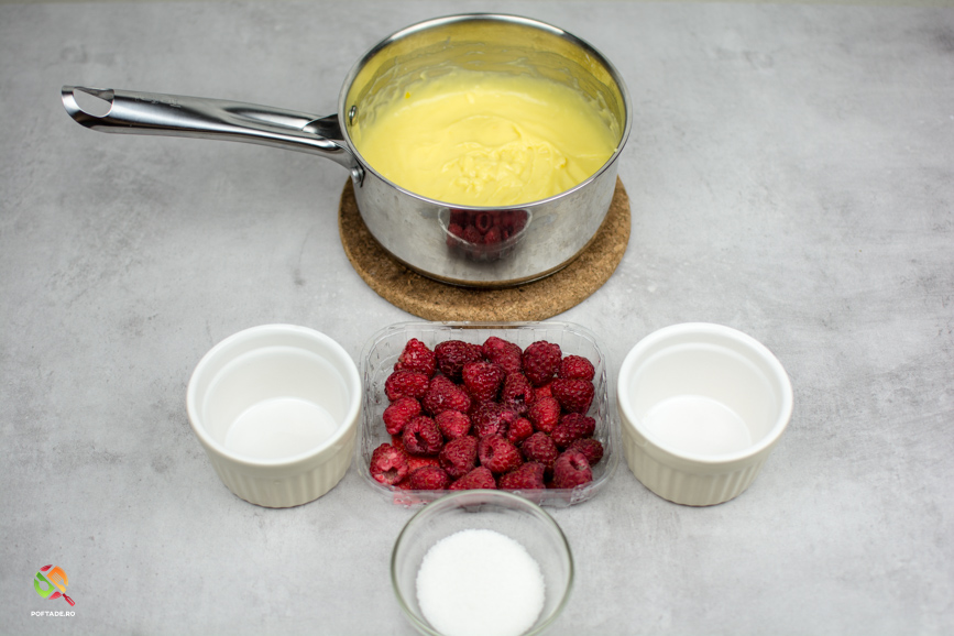 Cu ajutorul unei linguri punem crema de vanilie peste zmeura si o nivelam