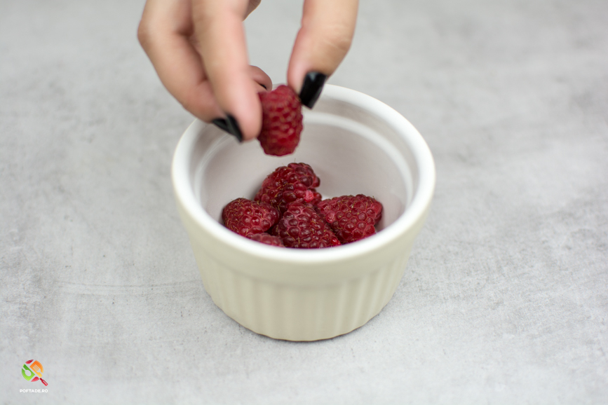 Asezam zmeura la baza vasului/vaselor termorezistente