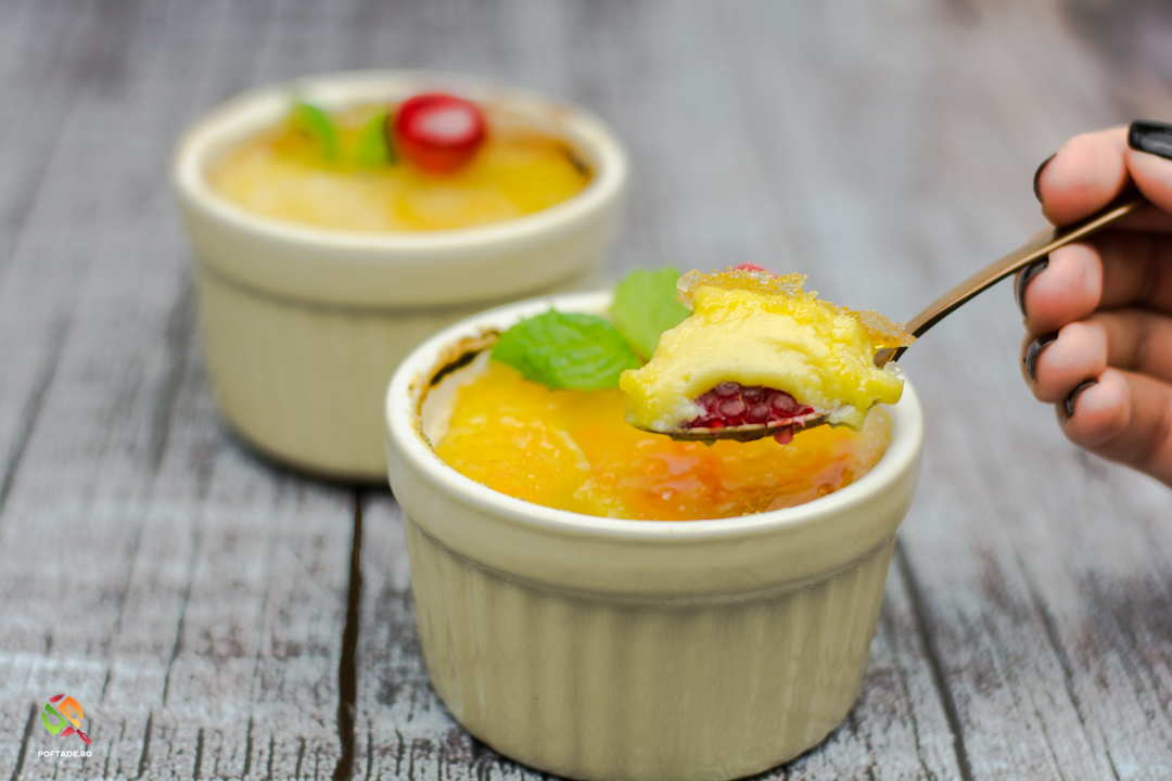 Budinca de vanilie caramelizata cu zmeura