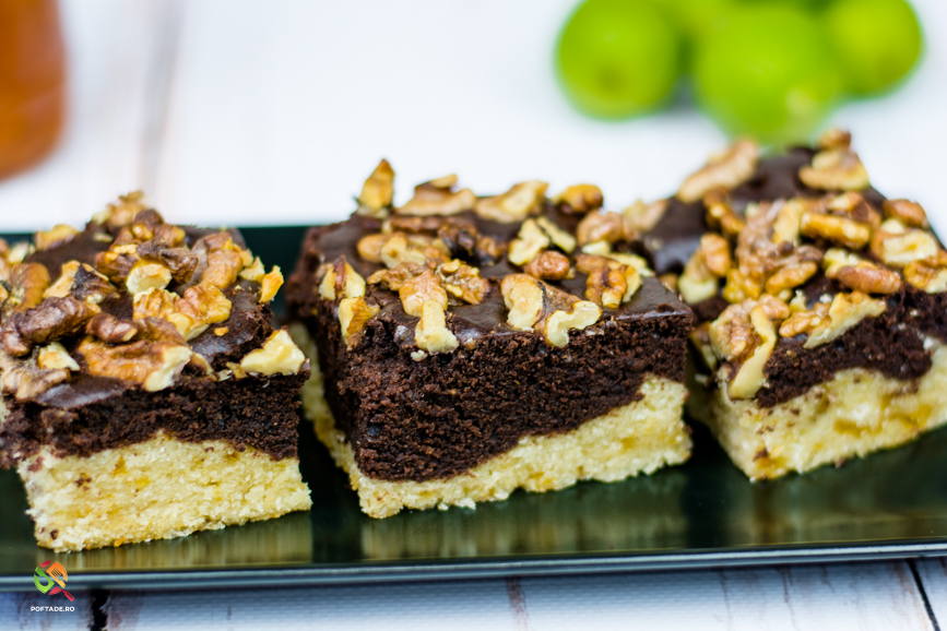 Presaram bucatele de nuca peste compozitia cu cacao. In functie de preferintele dumneavoastra puteti pune mai multa sau mai putina nuca
