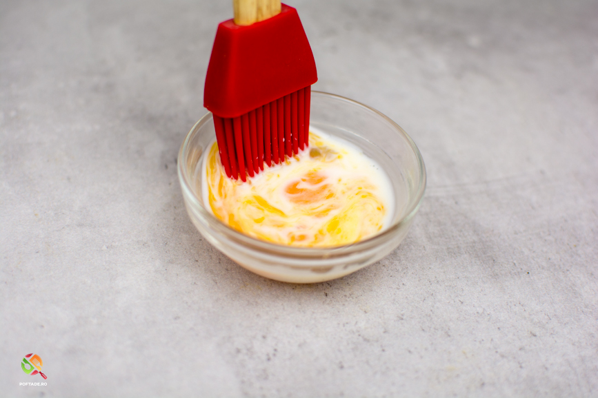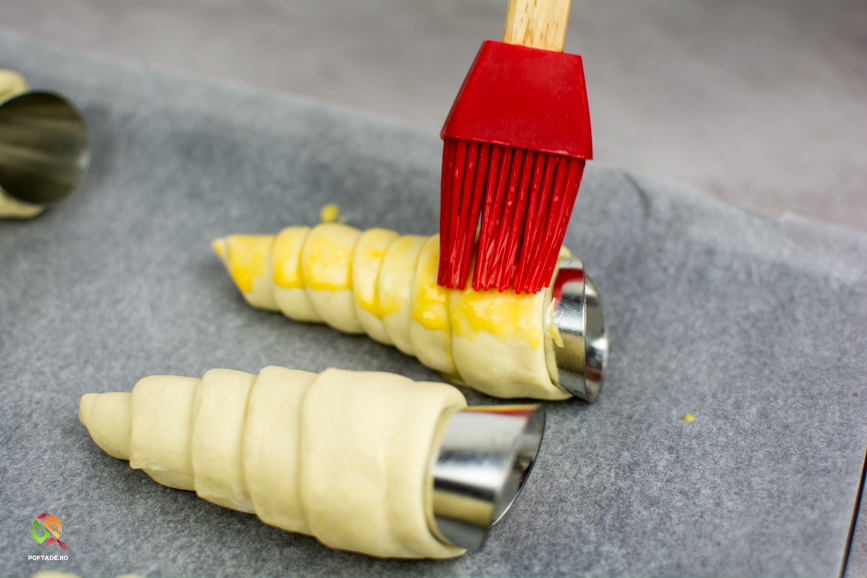 Cu ajutorul unei pensule ungem rulourile pe toata suprafata exterioara. Daca doriti puteti pune peste acestea zahar, scortisoara, nuca macinata etc.