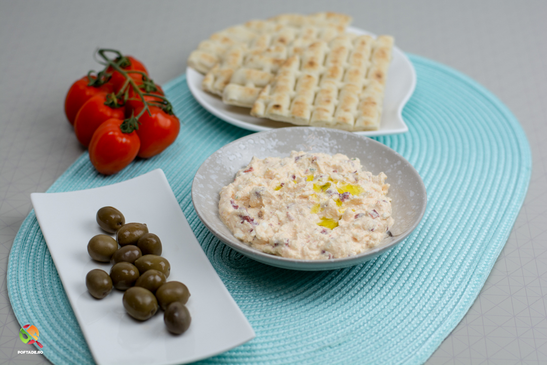 Salata greceasca Tirokafteri (de branza) sau cum cei mai multi o cunosc spicy dip cheese salad este unul dintre aperitivele ce nu lipsesc de la bine cunoscutele taverne grecesti. Tirokafteri este un preparat savuros datorita combinatiei de branza feta cu ardeiul copt ce ii confera cremozitate si un strop de dulceata totul imbinat cu sucul de lamaie si ardeiul iute pentru pentru un gust proaspat si usor iute cu influente mediteraneene.