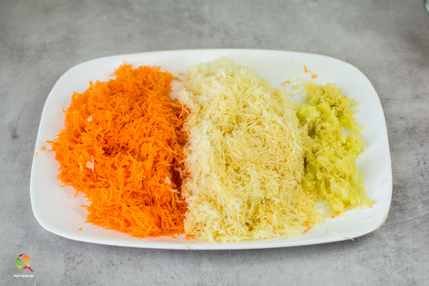 Cu ajutorul mainilor stoarcem bine de tot sucul si punem cantitatea de cruditati intr-un vas separat
