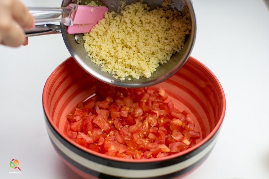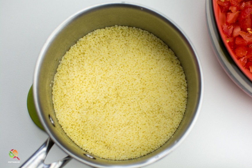 Intr-un vas incapator vom pune rosiile scurse peste care adaugam couscous-ul